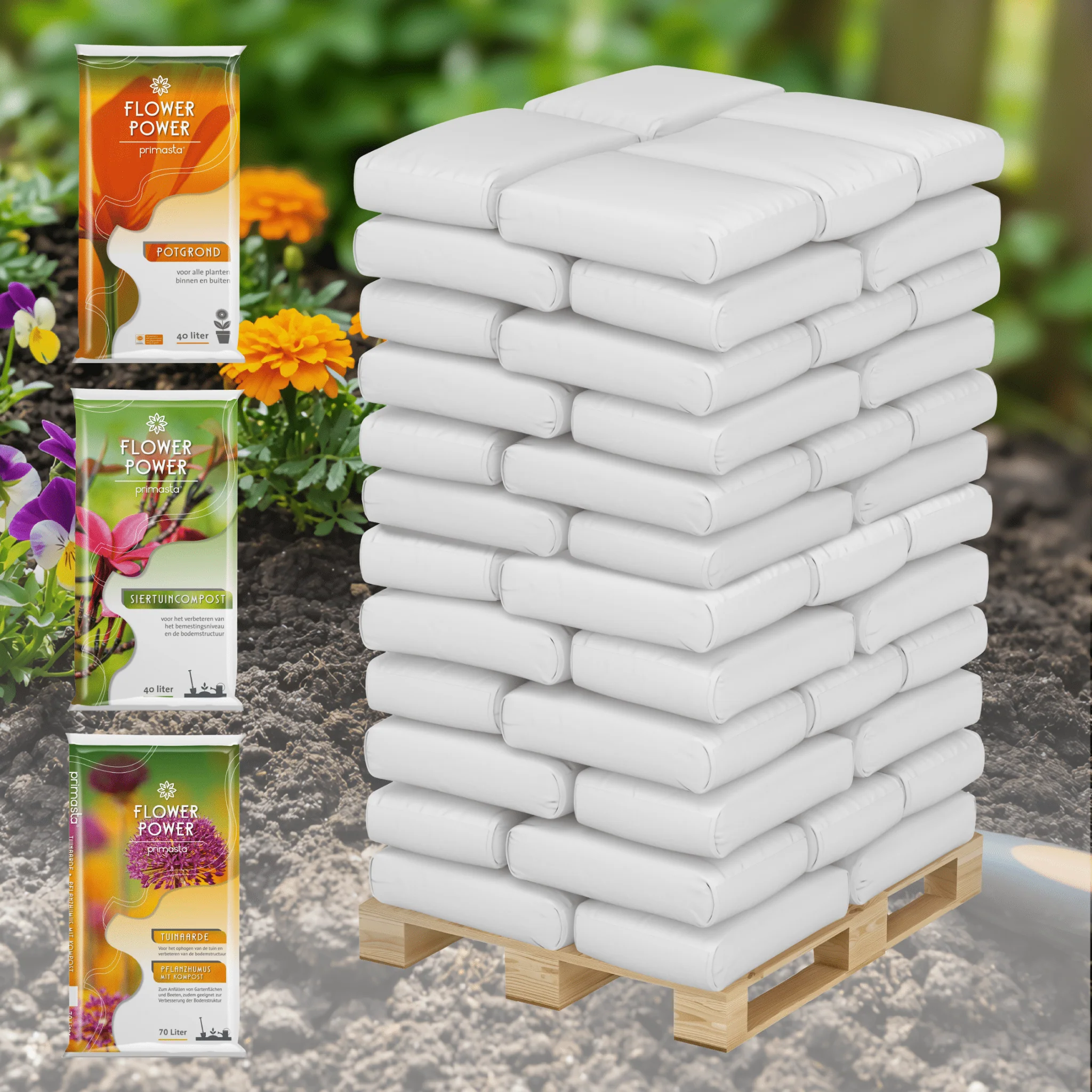 Het Startpakket bevat een royale hoeveelheid potgrond voor bakken en potten, tuinaarde voor bodemverbetering en compost om nieuwe beplanting optimaal te laten aanslaan.